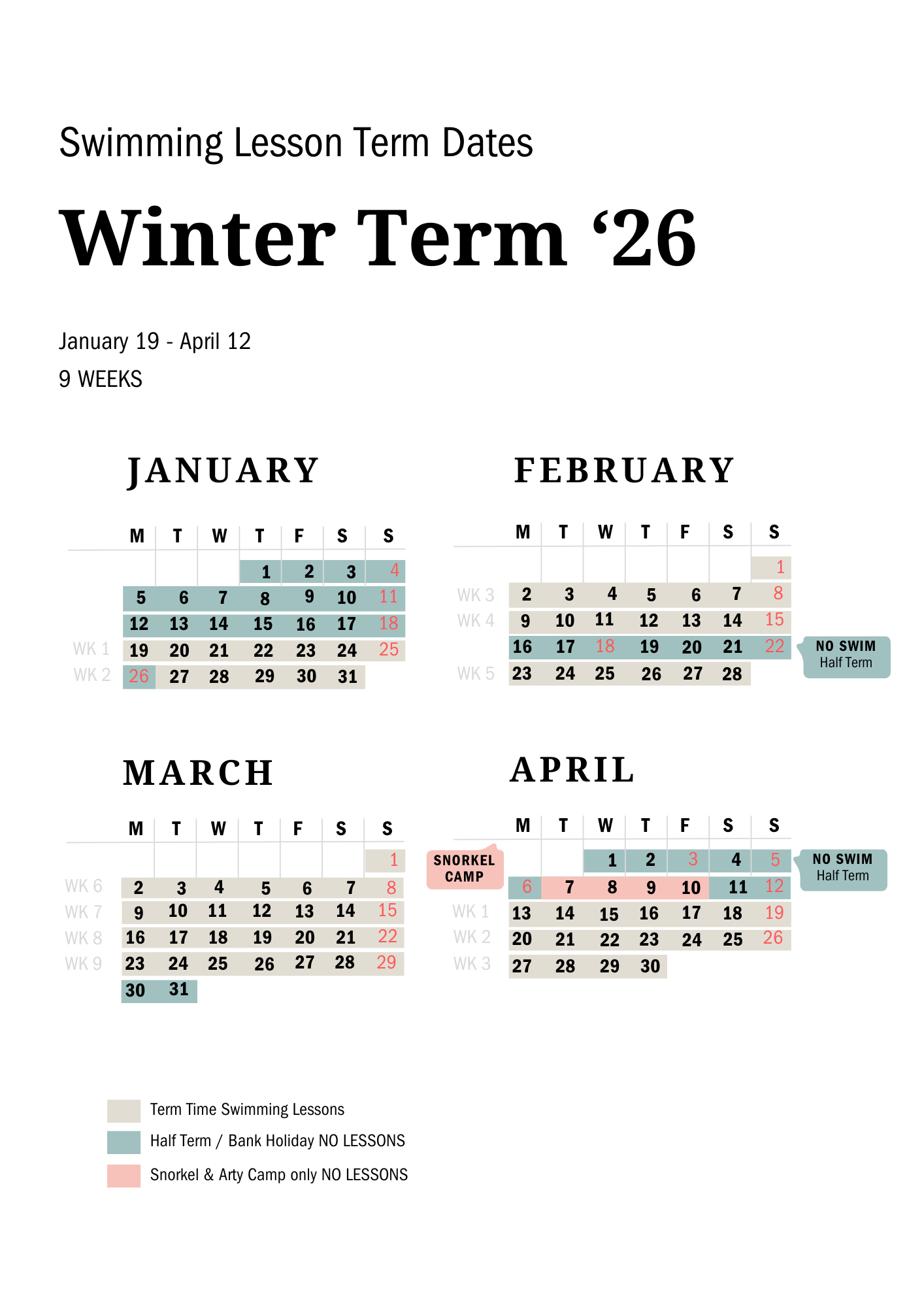 If you’d like to plan your little one’s swim calendar for Jan - June 2026 please click the button below.